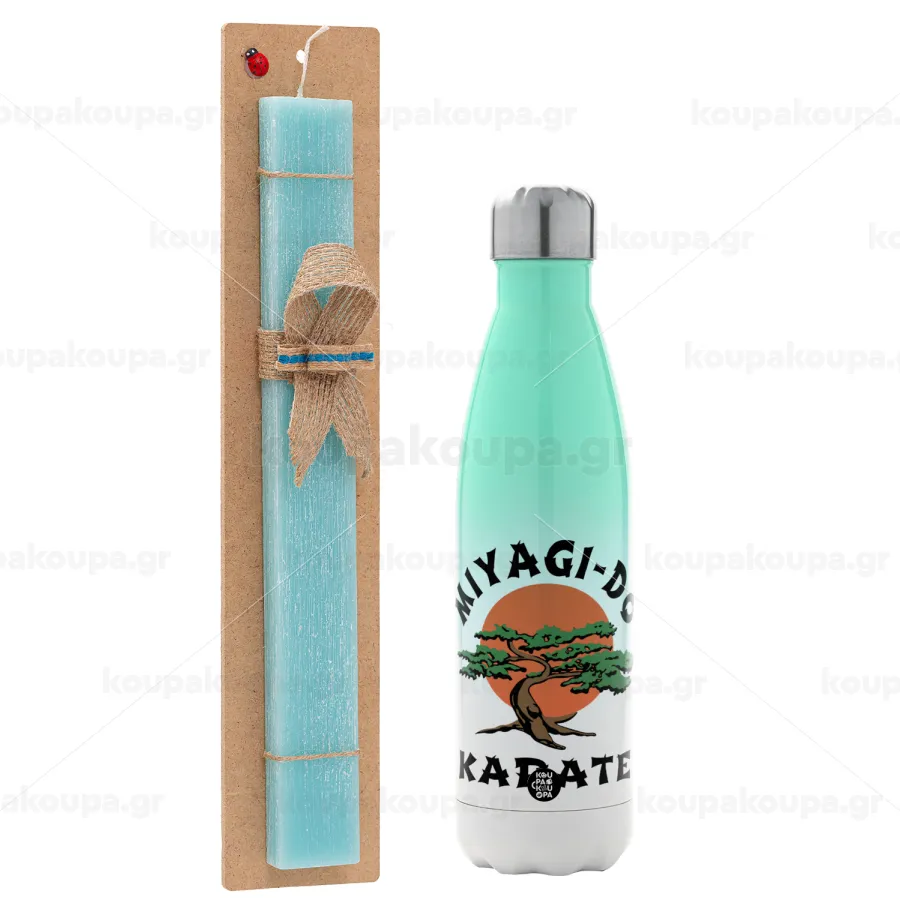 Miyagi-do karate, Πασχαλινή Λαμπάδα με Μεταλλικό παγούρι θερμός Πράσινο/Λευκό (Stainless steel), διπλού τοιχώματος, 500ml & κερί αρωματικό πλακέ (30cm) (ΤΙΡΚΟΥΑΖ)