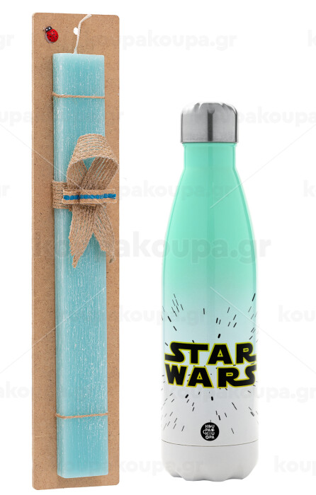 Star Wars, Πασχαλινή Λαμπάδα με Μεταλλικό παγούρι θερμός Πράσινο/Λευκό (Stainless steel), διπλού τοιχώματος, 500ml & κερί αρωματικό πλακέ (30cm) (ΤΙΡΚΟΥΑΖ)
