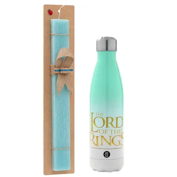 The Lord of the Rings, Πασχαλινή Λαμπάδα με Μεταλλικό παγούρι θερμός Πράσινο/Λευκό (Stainless steel), διπλού τοιχώματος, 500ml & κερί αρωματικό πλακέ (30cm) (ΤΙΡΚΟΥΑΖ)