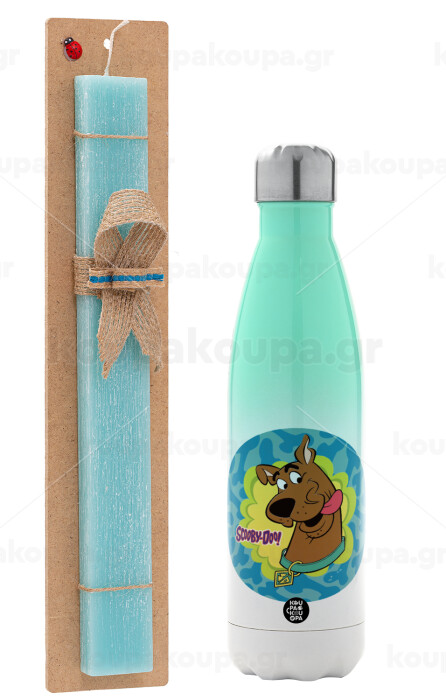 Scooby Doo, Πασχαλινή Λαμπάδα με Μεταλλικό παγούρι θερμός Πράσινο/Λευκό (Stainless steel), διπλού τοιχώματος, 500ml & κερί αρωματικό πλακέ (30cm) (ΤΙΡΚΟΥΑΖ)
