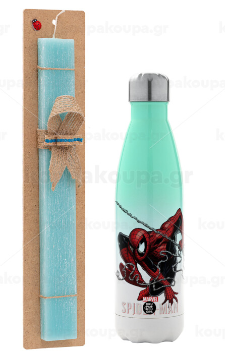 Spider-man, Πασχαλινή Λαμπάδα με Μεταλλικό παγούρι θερμός Πράσινο/Λευκό (Stainless steel), διπλού τοιχώματος, 500ml & κερί αρωματικό πλακέ (30cm) (ΤΙΡΚΟΥΑΖ)