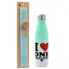 I Love, One Direction, Πασχαλινή Λαμπάδα με Μεταλλικό παγούρι θερμός Πράσινο/Λευκό (Stainless steel), διπλού τοιχώματος, 500ml & κερί αρωματικό πλακέ (30cm) (ΤΙΡΚΟΥΑΖ)