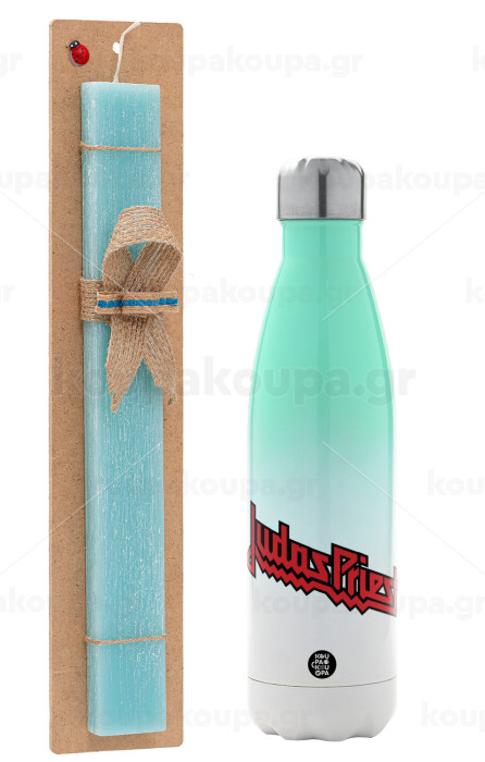 Judas Priest, Πασχαλινή Λαμπάδα με Μεταλλικό παγούρι θερμός Πράσινο/Λευκό (Stainless steel), διπλού τοιχώματος, 500ml & κερί αρωματικό πλακέ (30cm) (ΤΙΡΚΟΥΑΖ)
