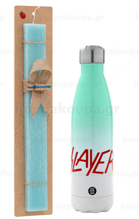 Slayer, Πασχαλινή Λαμπάδα με Μεταλλικό παγούρι θερμός Πράσινο/Λευκό (Stainless steel), διπλού τοιχώματος, 500ml & κερί αρωματικό πλακέ (30cm) (ΤΙΡΚΟΥΑΖ)