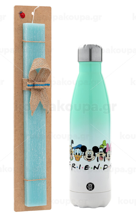 Friends characters, Πασχαλινή Λαμπάδα με Μεταλλικό παγούρι θερμός Πράσινο/Λευκό (Stainless steel), διπλού τοιχώματος, 500ml & κερί αρωματικό πλακέ (30cm) (ΤΙΡΚΟΥΑΖ)