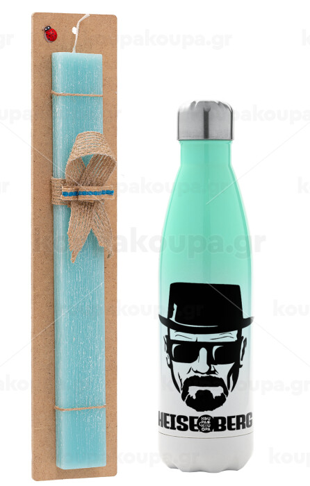 Heisenberg breaking bad, Πασχαλινή Λαμπάδα με Μεταλλικό παγούρι θερμός Πράσινο/Λευκό (Stainless steel), διπλού τοιχώματος, 500ml & κερί αρωματικό πλακέ (30cm) (ΤΙΡΚΟΥΑΖ)