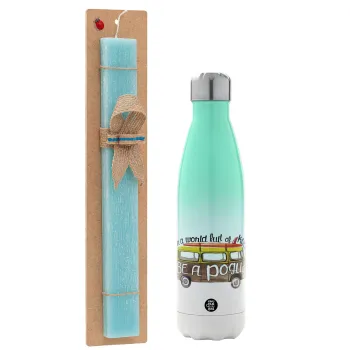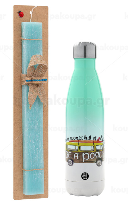 Outerbanks Pogue Life, Πασχαλινή Λαμπάδα με Μεταλλικό παγούρι θερμός Πράσινο/Λευκό (Stainless steel), διπλού τοιχώματος, 500ml & κερί αρωματικό πλακέ (30cm) (ΤΙΡΚΟΥΑΖ)