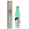 The office Michael NO!!!, Πασχαλινή Λαμπάδα με Μεταλλικό παγούρι θερμός Πράσινο/Λευκό (Stainless steel), διπλού τοιχώματος, 500ml & κερί αρωματικό πλακέ (30cm) (ΤΙΡΚΟΥΑΖ)