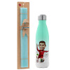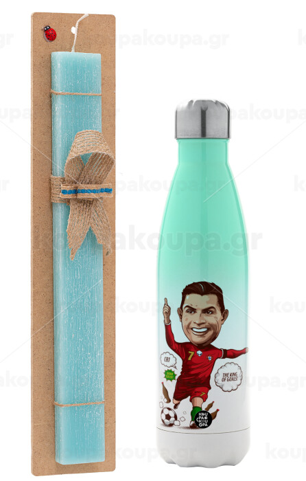Cristiano Ronaldo, Πασχαλινή Λαμπάδα με Μεταλλικό παγούρι θερμός Πράσινο/Λευκό (Stainless steel), διπλού τοιχώματος, 500ml & κερί αρωματικό πλακέ (30cm) (ΤΙΡΚΟΥΑΖ)