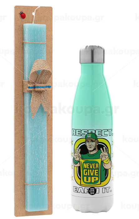 John Cena, Πασχαλινή Λαμπάδα με Μεταλλικό παγούρι θερμός Πράσινο/Λευκό (Stainless steel), διπλού τοιχώματος, 500ml & κερί αρωματικό πλακέ (30cm) (ΤΙΡΚΟΥΑΖ)