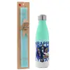 Kylian mbappe, Πασχαλινή Λαμπάδα με Μεταλλικό παγούρι θερμός Πράσινο/Λευκό (Stainless steel), διπλού τοιχώματος, 500ml & κερί αρωματικό πλακέ (30cm) (ΤΙΡΚΟΥΑΖ)