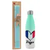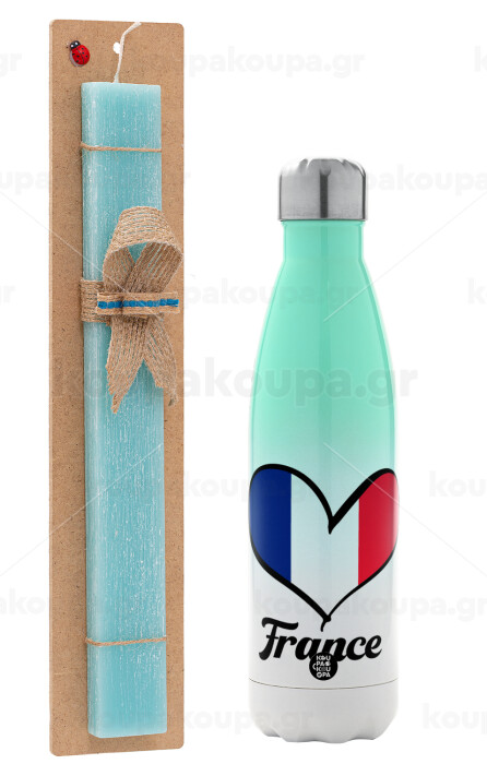 France flag, Πασχαλινή Λαμπάδα με Μεταλλικό παγούρι θερμός Πράσινο/Λευκό (Stainless steel), διπλού τοιχώματος, 500ml & κερί αρωματικό πλακέ (30cm) (ΤΙΡΚΟΥΑΖ)