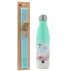 Λευκός κύκνος, Πασχαλινή Λαμπάδα με Μεταλλικό παγούρι θερμός Πράσινο/Λευκό (Stainless steel), διπλού τοιχώματος, 500ml & κερί αρωματικό πλακέ (30cm) (ΤΙΡΚΟΥΑΖ)