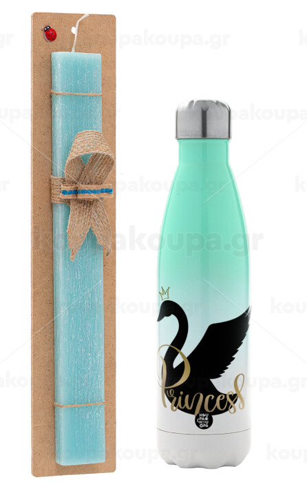 Swan Princess, Πασχαλινή Λαμπάδα με Μεταλλικό παγούρι θερμός Πράσινο/Λευκό (Stainless steel), διπλού τοιχώματος, 500ml & κερί αρωματικό πλακέ (30cm) (ΤΙΡΚΟΥΑΖ)