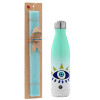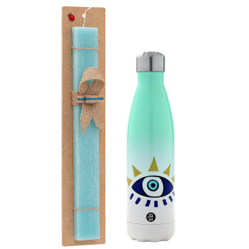 Μάτι, Πασχαλινή Λαμπάδα με Μεταλλικό παγούρι θερμός Πράσινο/Λευκό (Stainless steel), διπλού τοιχώματος, 500ml & κερί αρωματικό πλακέ (30cm) (ΤΙΡΚΟΥΑΖ)