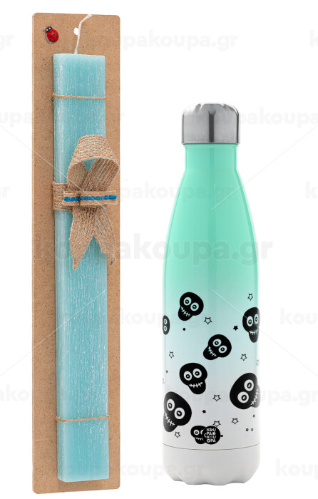 Skull avatar, Πασχαλινή Λαμπάδα με Μεταλλικό παγούρι θερμός Πράσινο/Λευκό (Stainless steel), διπλού τοιχώματος, 500ml & κερί αρωματικό πλακέ (30cm) (ΤΙΡΚΟΥΑΖ)