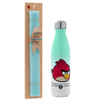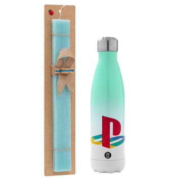 Πασχαλινή Λαμπάδα με Μεταλλικό παγούρι θερμός Πράσινο/Λευκό (Stainless steel), διπλού τοιχώματος, 500ml & κερί αρωματικό πλακέ (30cm) (ΤΙΡΚΟΥΑΖ) με θέμα Gaming