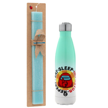 Among US Eat Sleep Repeat Impostor, Πασχαλινή Λαμπάδα με Μεταλλικό παγούρι θερμός Πράσινο/Λευκό (Stainless steel), διπλού τοιχώματος, 500ml & κερί αρωματικό πλακέ (30cm) (ΤΙΡΚΟΥΑΖ)