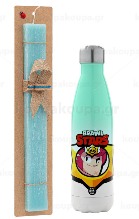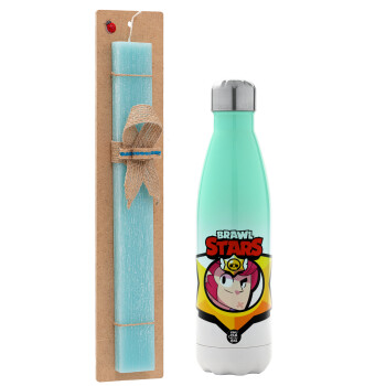 Brawl Stars Colt, Πασχαλινή Λαμπάδα με Μεταλλικό παγούρι θερμός Πράσινο/Λευκό (Stainless steel), διπλού τοιχώματος, 500ml & κερί αρωματικό πλακέ (30cm) (ΤΙΡΚΟΥΑΖ)