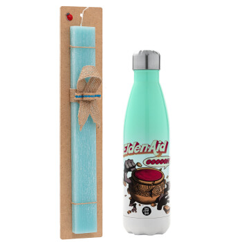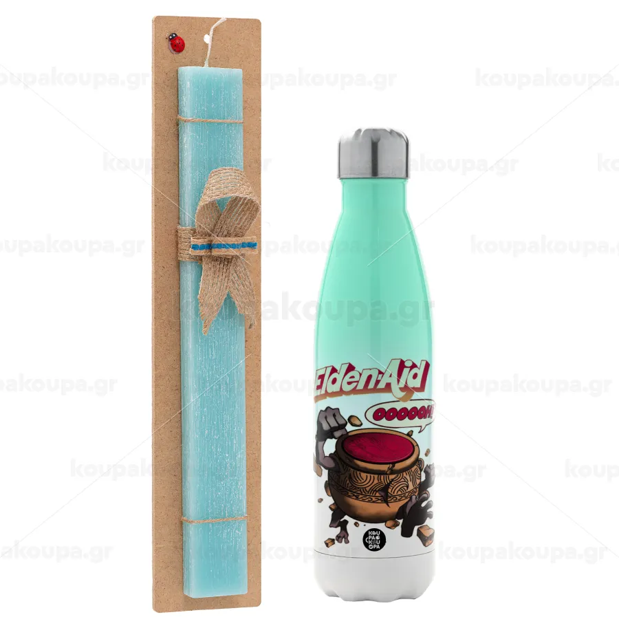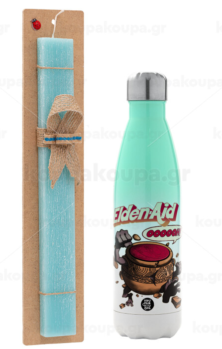 Elden-Aid, Elden Ring inspired , Πασχαλινή Λαμπάδα με Μεταλλικό παγούρι θερμός Πράσινο/Λευκό (Stainless steel), διπλού τοιχώματος, 500ml & κερί αρωματικό πλακέ (30cm) (ΤΙΡΚΟΥΑΖ)