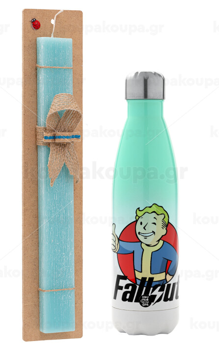 Fallout Vault Boy, Πασχαλινή Λαμπάδα με Μεταλλικό παγούρι θερμός Πράσινο/Λευκό (Stainless steel), διπλού τοιχώματος, 500ml & κερί αρωματικό πλακέ (30cm) (ΤΙΡΚΟΥΑΖ)