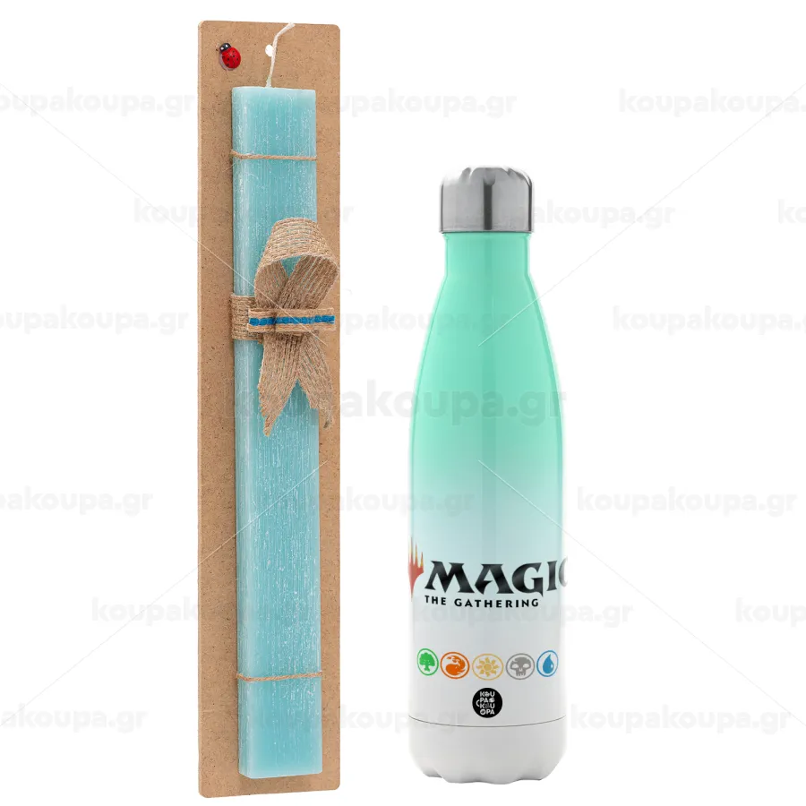 Magic the Gathering, Πασχαλινή Λαμπάδα με Μεταλλικό παγούρι θερμός Πράσινο/Λευκό (Stainless steel), διπλού τοιχώματος, 500ml & κερί αρωματικό πλακέ (30cm) (ΤΙΡΚΟΥΑΖ)