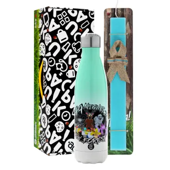 Roblox 99 nights in the forest, Πασχαλινή Λαμπάδα με Μεταλλικό παγούρι θερμός Πράσινο/Λευκό (Stainless steel), διπλού τοιχώματος, 500ml & κερί αρωματικό πλακέ (30cm) (ΤΙΡΚΟΥΑΖ)