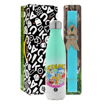 Roblox Steal a Brainrot, Πασχαλινή Λαμπάδα με Μεταλλικό παγούρι θερμός Πράσινο/Λευκό (Stainless steel), διπλού τοιχώματος, 500ml & κερί αρωματικό πλακέ (30cm) (ΤΙΡΚΟΥΑΖ)