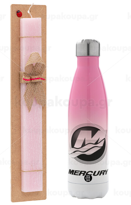 Mercury, Πασχαλινή Λαμπάδα με Μεταλλικό παγούρι θερμός Ροζ/Λευκό (Stainless steel), διπλού τοιχώματος, 500ml & κερί αρωματικό πλακέ (30cm) (ΡΟΖ)