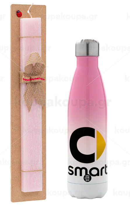 smart, Πασχαλινή Λαμπάδα με Μεταλλικό παγούρι θερμός Ροζ/Λευκό (Stainless steel), διπλού τοιχώματος, 500ml & κερί αρωματικό πλακέ (30cm) (ΡΟΖ)