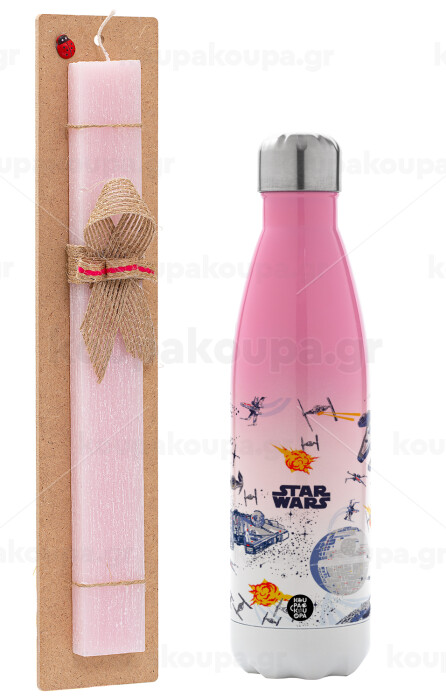Ο πόλεμος των άστρων, Πασχαλινή Λαμπάδα με Μεταλλικό παγούρι θερμός Ροζ/Λευκό (Stainless steel), διπλού τοιχώματος, 500ml & κερί αρωματικό πλακέ (30cm) (ΡΟΖ)