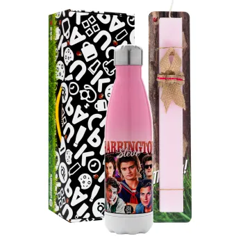 Steve Harrington, Stranger Things, Πασχαλινή Λαμπάδα με Μεταλλικό παγούρι θερμός Ροζ/Λευκό (Stainless steel), διπλού τοιχώματος, 500ml & κερί αρωματικό πλακέ (30cm) (ΡΟΖ)