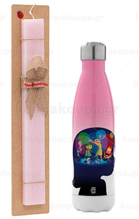 Τα Μυαλά που Κουβαλάς, Πασχαλινή Λαμπάδα με Μεταλλικό παγούρι θερμός Ροζ/Λευκό (Stainless steel), διπλού τοιχώματος, 500ml & κερί αρωματικό πλακέ (30cm) (ΡΟΖ)