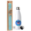 Lilo & Stitch blue, Πασχαλινή Λαμπάδα με Μεταλλικό παγούρι θερμός Ροζ/Λευκό (Stainless steel), διπλού τοιχώματος, 500ml & κερί αρωματικό πλακέ (30cm) (ΡΟΖ)