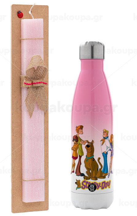 Scooby Doo Characters, Πασχαλινή Λαμπάδα με Μεταλλικό παγούρι θερμός Ροζ/Λευκό (Stainless steel), διπλού τοιχώματος, 500ml & κερί αρωματικό πλακέ (30cm) (ΡΟΖ)