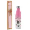 BTS signatures, Πασχαλινή Λαμπάδα με Μεταλλικό παγούρι θερμός Ροζ/Λευκό (Stainless steel), διπλού τοιχώματος, 500ml & κερί αρωματικό πλακέ (30cm) (ΡΟΖ)