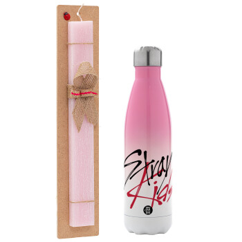 Stray Kids, Πασχαλινή Λαμπάδα με Μεταλλικό παγούρι θερμός Ροζ/Λευκό (Stainless steel), διπλού τοιχώματος, 500ml & κερί αρωματικό πλακέ (30cm) (ΡΟΖ)