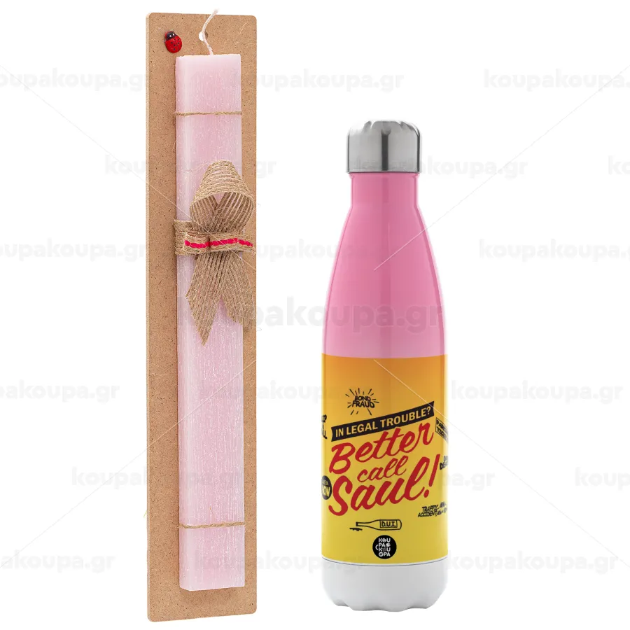Better Call Saul, Πασχαλινή Λαμπάδα με Μεταλλικό παγούρι θερμός Ροζ/Λευκό (Stainless steel), διπλού τοιχώματος, 500ml & κερί αρωματικό πλακέ (30cm) (ΡΟΖ)