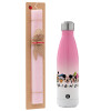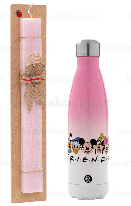 Friends characters, Πασχαλινή Λαμπάδα με Μεταλλικό παγούρι θερμός Ροζ/Λευκό (Stainless steel), διπλού τοιχώματος, 500ml & κερί αρωματικό πλακέ (30cm) (ΡΟΖ)