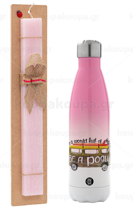 Outerbanks Pogue Life, Πασχαλινή Λαμπάδα με Μεταλλικό παγούρι θερμός Ροζ/Λευκό (Stainless steel), διπλού τοιχώματος, 500ml & κερί αρωματικό πλακέ (30cm) (ΡΟΖ)