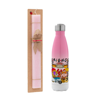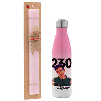 Wednesday Adams, dance with hands, Πασχαλινή Λαμπάδα με Μεταλλικό παγούρι θερμός Ροζ/Λευκό (Stainless steel), διπλού τοιχώματος, 500ml & κερί αρωματικό πλακέ (30cm) (ΡΟΖ)