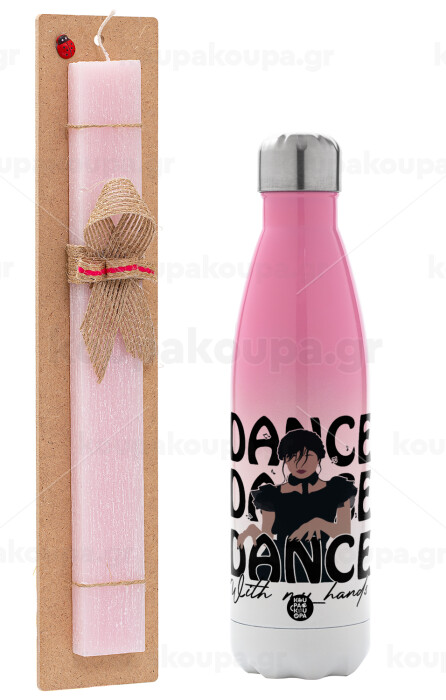 Wednesday dance dance dance, Πασχαλινή Λαμπάδα με Μεταλλικό παγούρι θερμός Ροζ/Λευκό (Stainless steel), διπλού τοιχώματος, 500ml & κερί αρωματικό πλακέ (30cm) (ΡΟΖ)