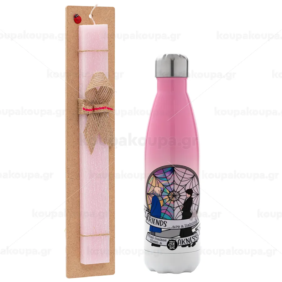 Wednesday window, Πασχαλινή Λαμπάδα με Μεταλλικό παγούρι θερμός Ροζ/Λευκό (Stainless steel), διπλού τοιχώματος, 500ml & κερί αρωματικό πλακέ (30cm) (ΡΟΖ)