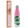 Π.Α.Ο., Πασχαλινή Λαμπάδα με Μεταλλικό παγούρι θερμός Ροζ/Λευκό (Stainless steel), διπλού τοιχώματος, 500ml & κερί αρωματικό πλακέ (30cm) (ΡΟΖ)