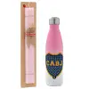 Club Atlético Boca Juniors, Πασχαλινή Λαμπάδα με Μεταλλικό παγούρι θερμός Ροζ/Λευκό (Stainless steel), διπλού τοιχώματος, 500ml & κερί αρωματικό πλακέ (30cm) (ΡΟΖ)