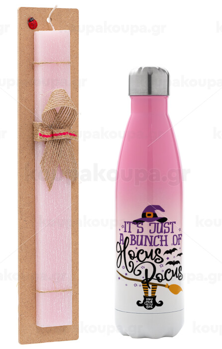It's just a bunch of hocus pocus - halloween, Πασχαλινή Λαμπάδα με Μεταλλικό παγούρι θερμός Ροζ/Λευκό (Stainless steel), διπλού τοιχώματος, 500ml & κερί αρωματικό πλακέ (30cm) (ΡΟΖ)