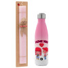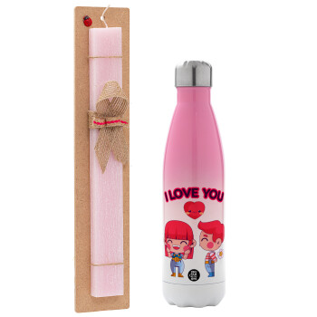 Couple, I love you, Πασχαλινή Λαμπάδα με Μεταλλικό παγούρι θερμός Ροζ/Λευκό (Stainless steel), διπλού τοιχώματος, 500ml & κερί αρωματικό πλακέ (30cm) (ΡΟΖ)