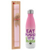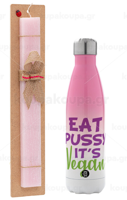 EAT pussy it's vegan, Πασχαλινή Λαμπάδα με Μεταλλικό παγούρι θερμός Ροζ/Λευκό (Stainless steel), διπλού τοιχώματος, 500ml & κερί αρωματικό πλακέ (30cm) (ΡΟΖ)