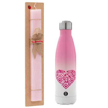 Heart hidden MSG, try me!!!, Πασχαλινή Λαμπάδα με Μεταλλικό παγούρι θερμός Ροζ/Λευκό (Stainless steel), διπλού τοιχώματος, 500ml & κερί αρωματικό πλακέ (30cm) (ΡΟΖ)