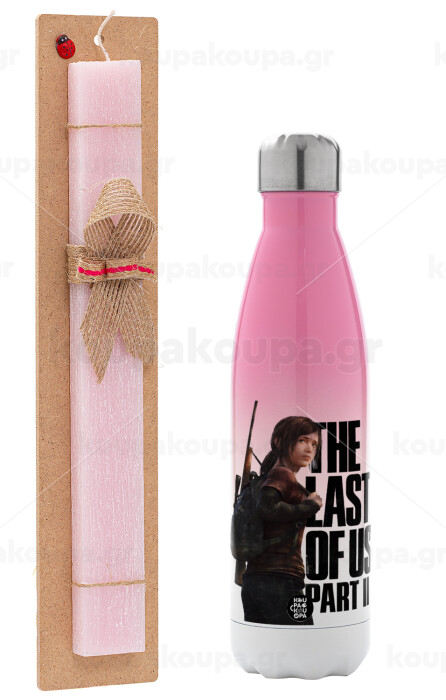 Last of us, Ellie, Πασχαλινή Λαμπάδα με Μεταλλικό παγούρι θερμός Ροζ/Λευκό (Stainless steel), διπλού τοιχώματος, 500ml & κερί αρωματικό πλακέ (30cm) (ΡΟΖ)